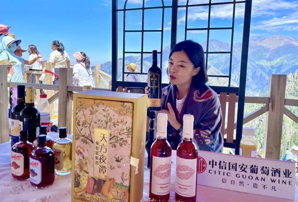 直播还没开始,尼雅已经在天山云端为来自全国的游客斟上了地道的新疆美酒,浓郁的酒香引来了不少游客驻足品尝。