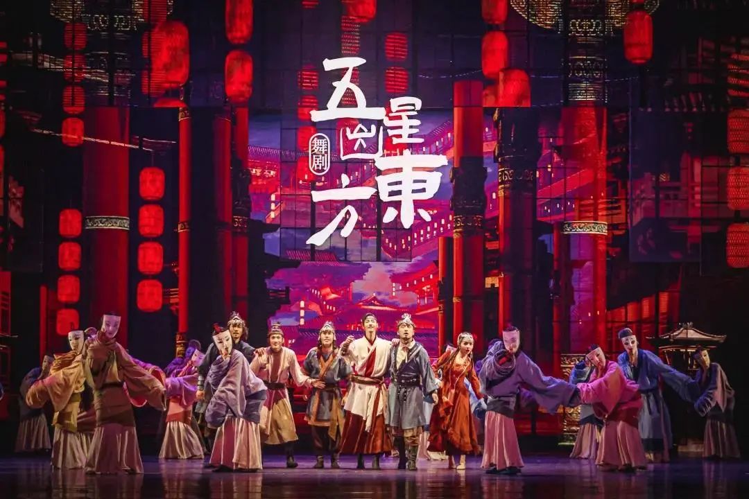 《五星出东方》舞剧由中共北京市委宣传部、中共新疆维吾尔自治区党委宣传部联合出品,以尼雅遗址出土的国家一级文物“五星出东方利中国”汉代织锦护膊为题材创作而来。