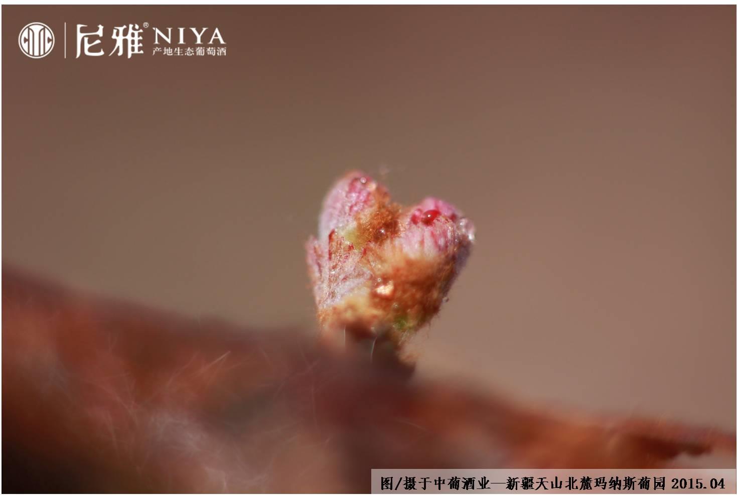 迎着春日的阳光和拂面的暖风,被精心保护了一冬的藤蔓终于出土,整齐地绑缚在葡萄架上,葡萄的根系也在努力的生长,往更深层的土壤不断的延伸,而在疏松的弱碱性砾石沙壤土的深处,天山的万年冰川融水正滋养着葡园里的每一株葡萄,发达的根系使它们得到稳定的水分及养分的供应。在这一切自然天成的环境中,每一株嫩芽从诞生之日起,就饱含着天然与纯净。